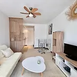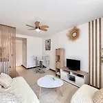 Staying at the beachfront Au Coeur Du Cap, Plage & Port A Pied Titre Fr Agde apartment, guests can relax on a terrace 25 minutes' walk from the Cap d'Agde Marine Aquarium. Wi-Fi is provided for both business and leisure activities.